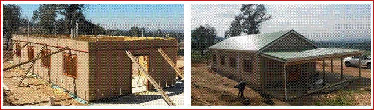 These structures, when complete, look like conventional houses/schools/granny flats, but their thermal and acoustic properties far exceed that of conventional brick.
